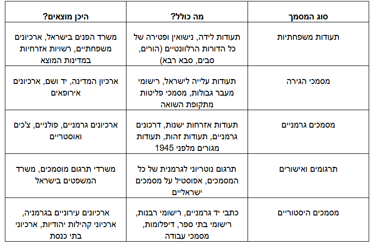 התהליך מחייב הכנה יסודית ואיסוף מסמכים היסטוריים שמעידים על הקשר המשפחתי לגרמניה, הנה פירוט מסודר של סוגי המסמכים הנדרשים ומה כל אחד מהם כולל: